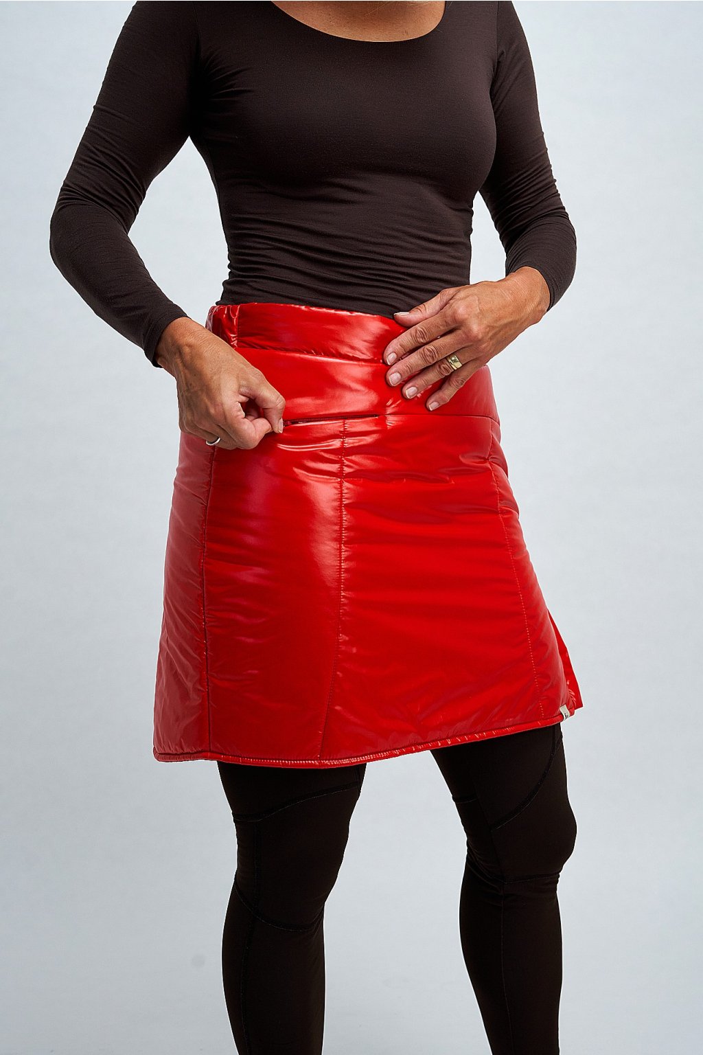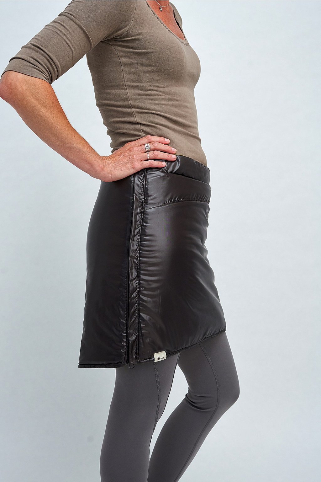 Oboustranná prošívaná sukně je ideálním doplňkem k vestě, ale skvěle vynikne i samostatně. Lícová strana je navíc doplněna o kapsičku vpředu. Skvěle se hodí na jarní a podzimní procházky, stejně jako na zimní sporty