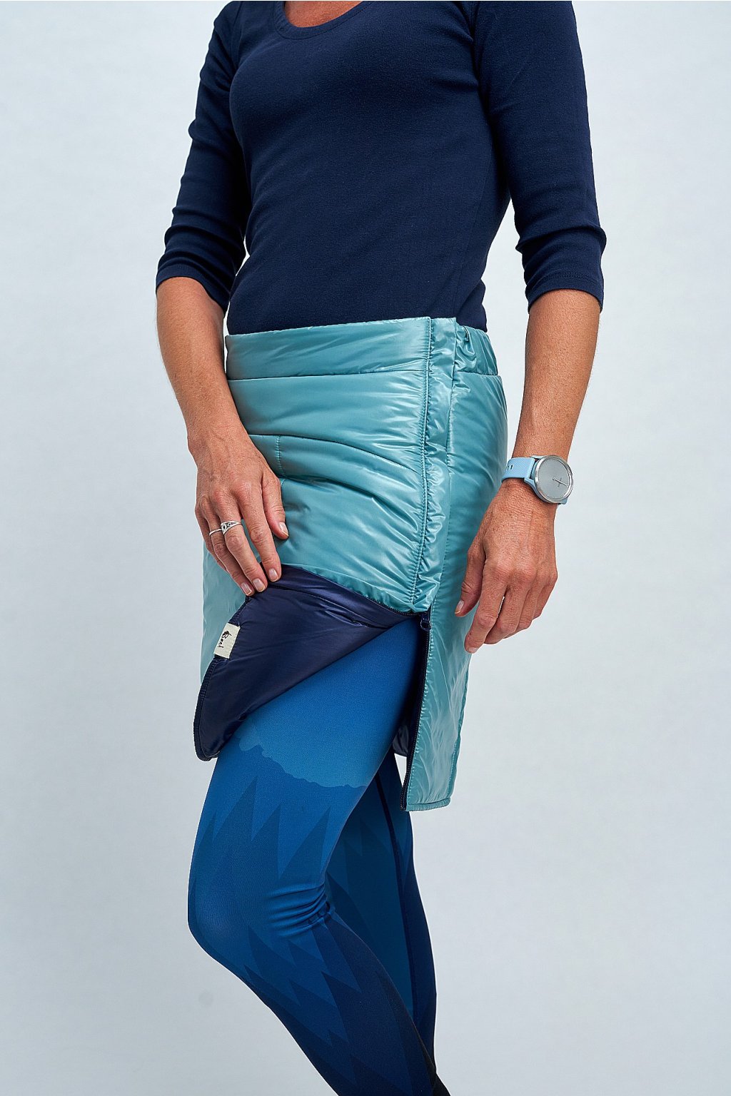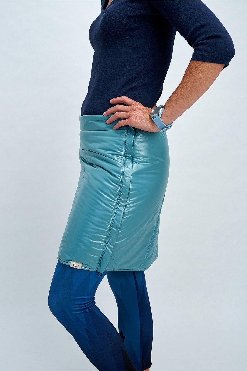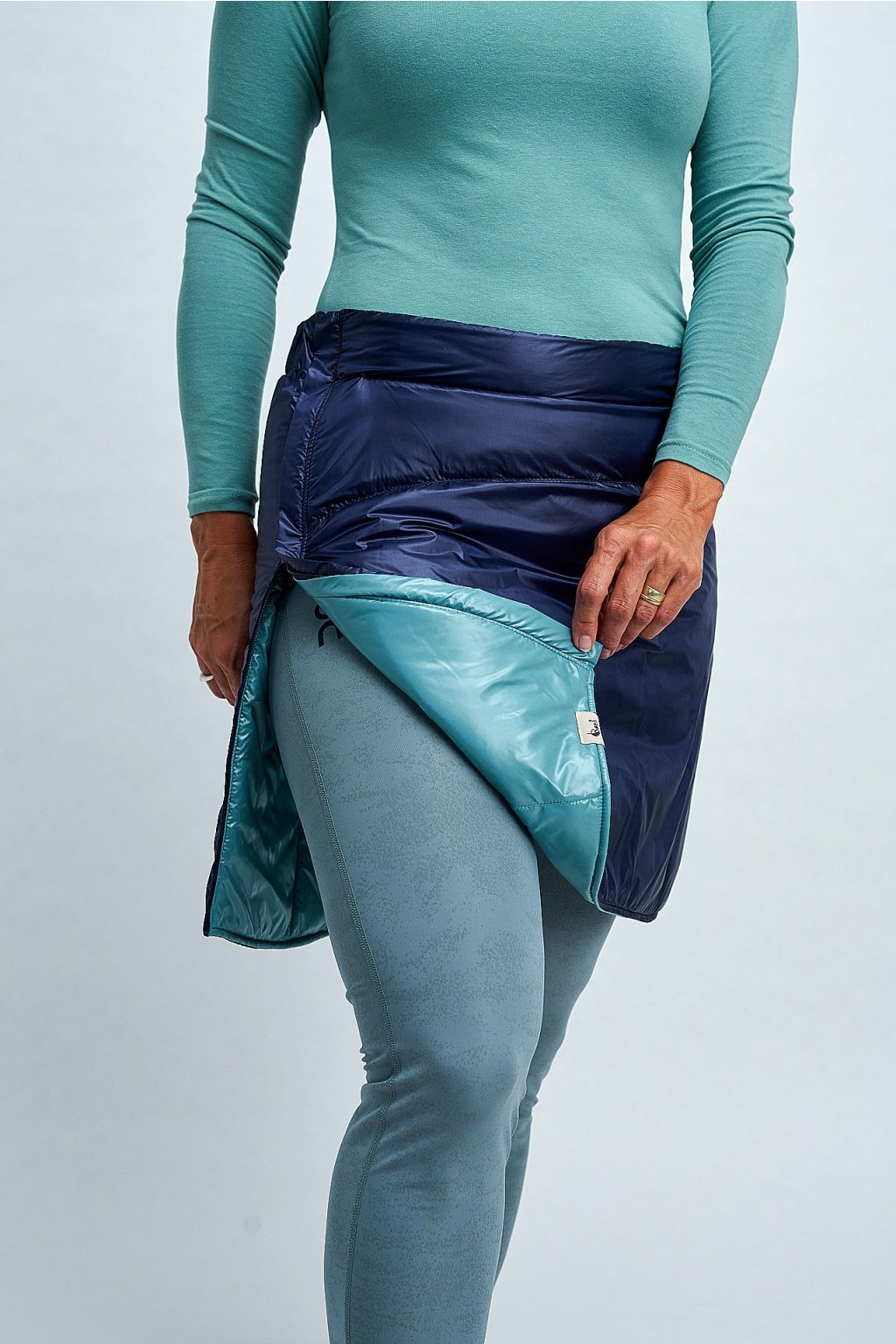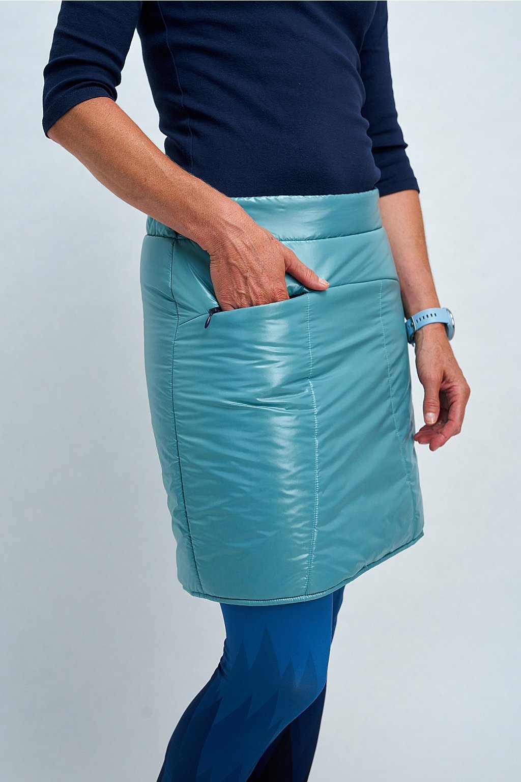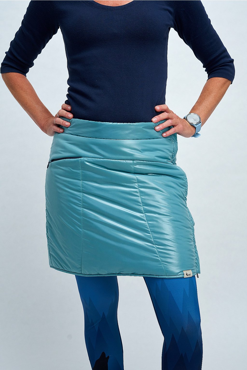 Oboustranná prošívaná sukně je ideálním doplňkem k vestě, ale skvěle vynikne i samostatně. Lícová strana je navíc doplněna o kapsičku vpředu. Skvěle se hodí na jarní a podzimní procházky, stejně jako na zimní sporty